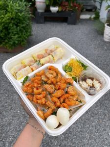 Một phần bánh tráng trộn có giá vô cùng phải chăng, siêu nhiều, full topping trứng cút, xoài, bò khô, mực khô cũng nhiều nữa, có vị cay cay của nước trộn bánh tráng ăn rất đã. Một bữa buffet bánh tráng chính hiệu với vô vàn món nào là bánh tráng sa tế khô bò, sa tế tôm, bánh tráng bò mỡ hành, bánh tráng bơ, đủ thứ loại luôn ngoài ra còn có khô bò, khô mực, đậu phộng, rau xoài, tép,… Vì quán rất đông nên nếu muốn ngồi ăn các bạn nên đến tầm trước 5h chiều không là hết bàn nhé. Còn chần chừ gì nữa mà không chạy ngay đến Bánh Tráng Trộn – Gánh Hàng Rong để thưởng thức trọn vẹn hương vị quyến rũ này nào!