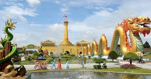 Là khu du lịch tâm linh mang đậm truyền thống văn hóa của dân tộc, khu du lịch Đại Nam tích hợp nhiều loại hình du lịch, vui chơi giải trí với tổng diện tích lên đến 476 ha. Nổi bật nhất của khu du lịch Đại Nam phải nói đến Kim Điện. Kim Điện là công trình đền thờ lớn nhất Việt Nam, bên trong dát vàng 24k. Toàn bộ khu vực rộng 9ha gồm hoa viên, núi non. Khu vực đền thờ rộng 5000 m² được làm bằng gỗ quý, vách đá, hoa văn dát vàng 24k. Một trong điểm nổi bật khác của khu du lịch Đại Nam chính là đền Đại Nam rộng 9 ha và có cửa chính hướng về Hoa viên Quan Thế Âm Bồ Tát. Đây cũng là nơi diễn ra các lễ hội tầm cỡ quốc gia, tiêu biểu phải kể đến lễ chào mừng Đại Lễ Phật Đản Liên Hiệp Quốc – VESAK cùng các màn trình diễn đặc sắc vào các dịp đại lễ. Ngoài đền Đại Nam, khu du lịch này còn sở hữu một mô hình vườn thú mở được ghi nhận là mô hình đầu tiên xuất hiện tại Việt Nam với chủng loại đa dạng, có cả những loài thú quý hiếm và đang có nguy cơ tuyệt chủng như hổ Đông Dương, Nai Cà – Tông… Khu du lịch Đại Nam cũng sở hữu một bãi biển nhân tạo thực sự ấn tượng, thu hút đông đảo các gia đình đưa con trẻ đến đây vui chơi, hòa mình vào làn nước trong xanh vào những dịp lễ hay ngày cuối tuần. Ngoài khu vực biển còn có các lâu đài được nước biển bao quanh cùng các đảo nhỏ và hệ thống tạo sóng mang lại cảm giác chân thật nhất cho du khách như ở biển tự nhiên.