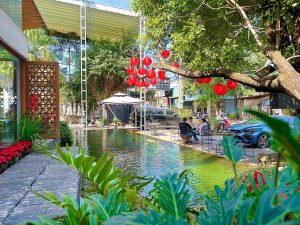 Nếu du khách là một người yêu thích truyện Doraemon, thích văn hóa Nhật Bản thì không thể nào không biết đến loài cá Koi. Để có thể ngắm nhìn loài cá Koi giữa một thành phố năng động như ở Bình Duong thì phải đến Koi Cafe. Người ta còn ví Koi Cafe giống như một ốc đảo nhỏ xinh, yên bình giữa lòng thành phố ồn ào, đông đúc. Đây là một trong những quán cafe sân vườn có hồ cá đẹp tại Bình Dương hiện nay. Vừa ngồi thưởng thức đồ uống yêu thích và ngắm nhìn cà koi bởi lội bên dưới hồ là trải nghiệm đầy thú vị.